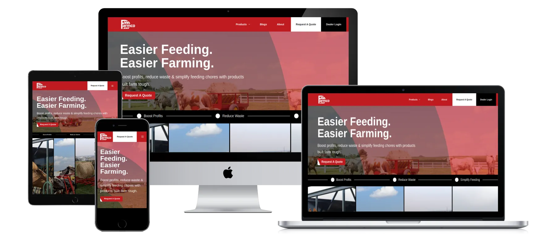 - Custom Website Design: We provided the UI/UX design and visual strategy for Farmco’s digital presence. Partnering with E-Impact for the development phase, we focused on creating a "digital catalog" experience that makes it easy for farmers and ranchers to find specific cattle and horse equipment, view specs, and find their local dealer.