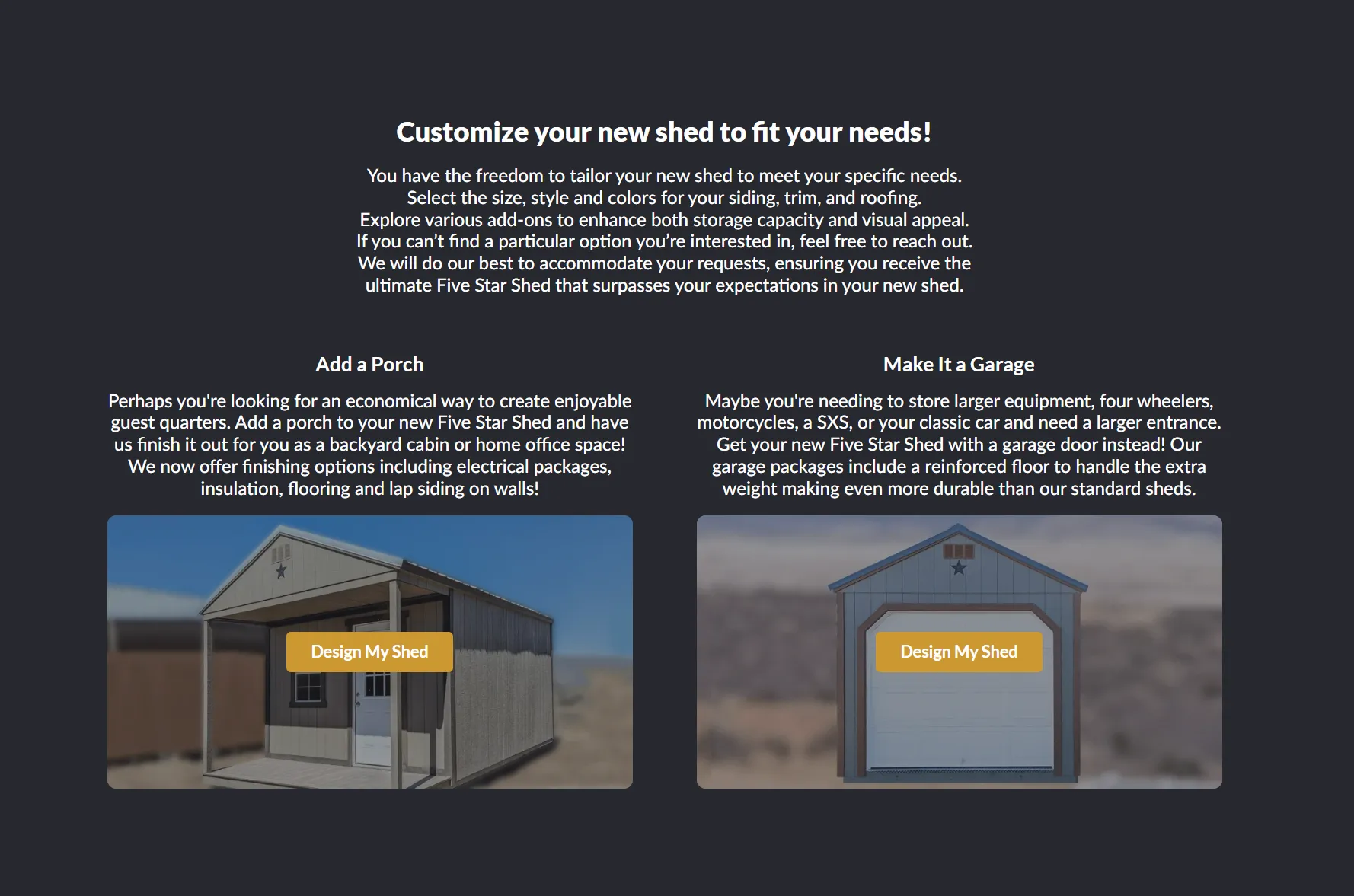 Our Services for Five Star Sheds